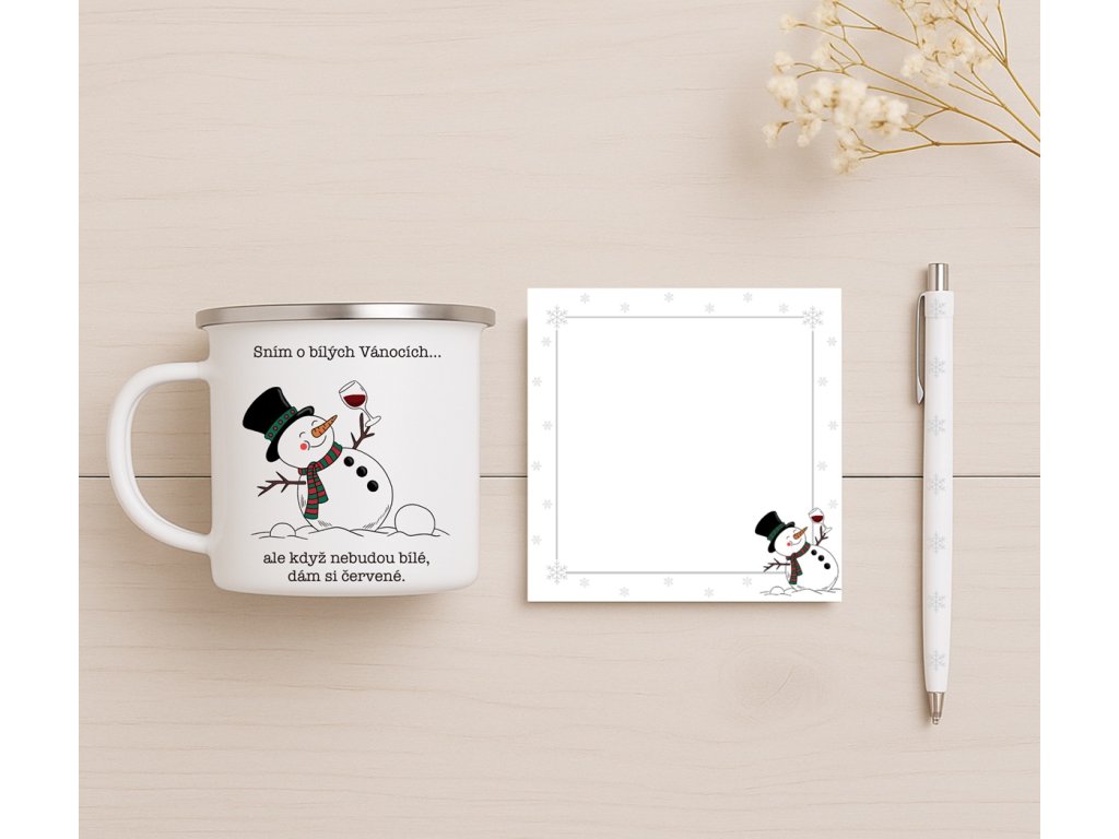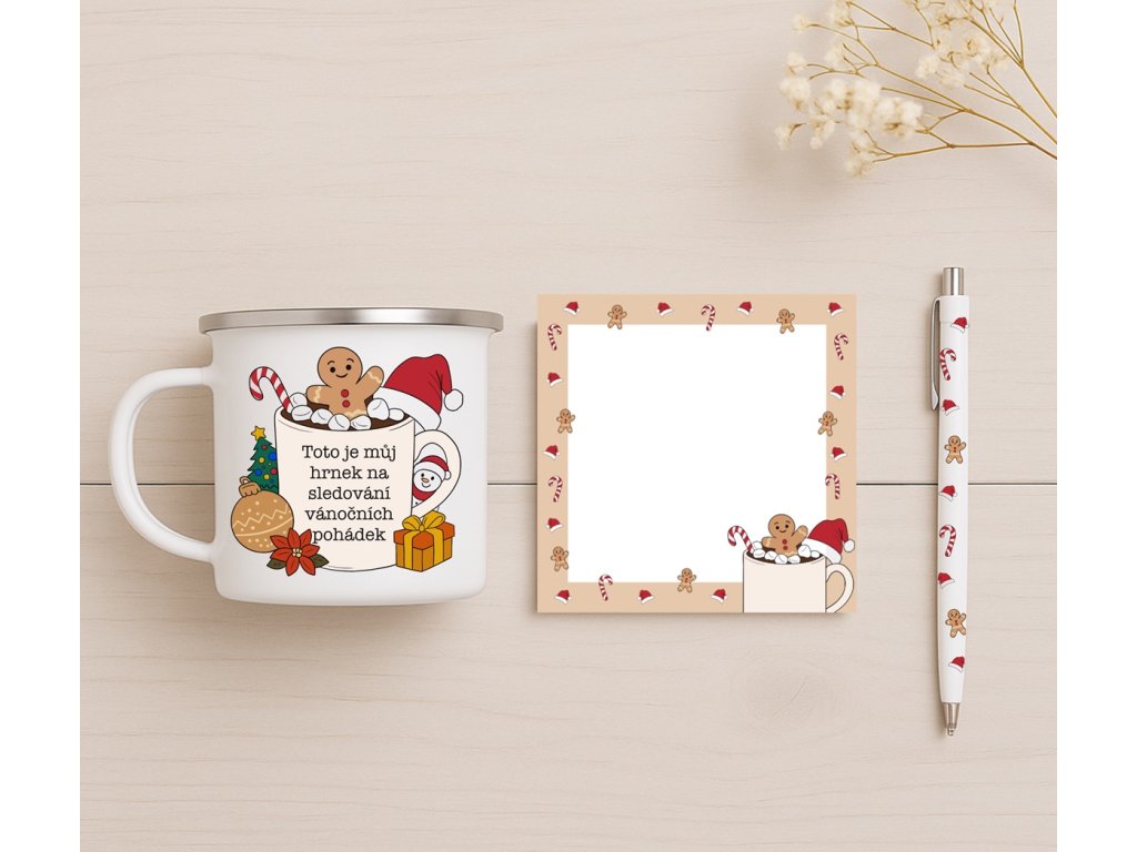 Krásný vánoční balíček připravený rovnou k darování. Plecháček s originálním designem, trhací bloček a propiska - vše sladěné do jednoho motivu v elegantním celofánovém balení. Krásná drobnost, která potěší každého milovníka zimních nápojů a pohody.