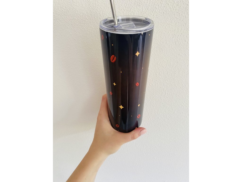 Originální termo kelímek s astronautem sedícím na croissantu potěší každého snílka i milovníka kávy. Hrátky s fantazií doplňují zrnka kávy, která celý motiv propojují.