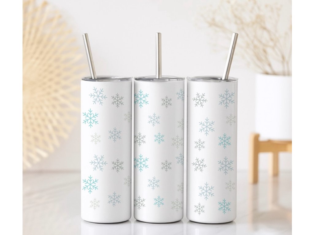 Jemný zimní motiv s modrými vločkami pro milovníky čistého a elegantního stylu.